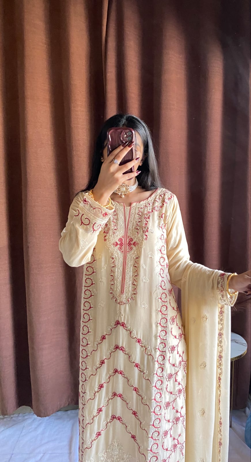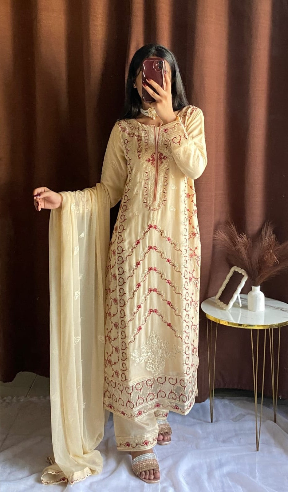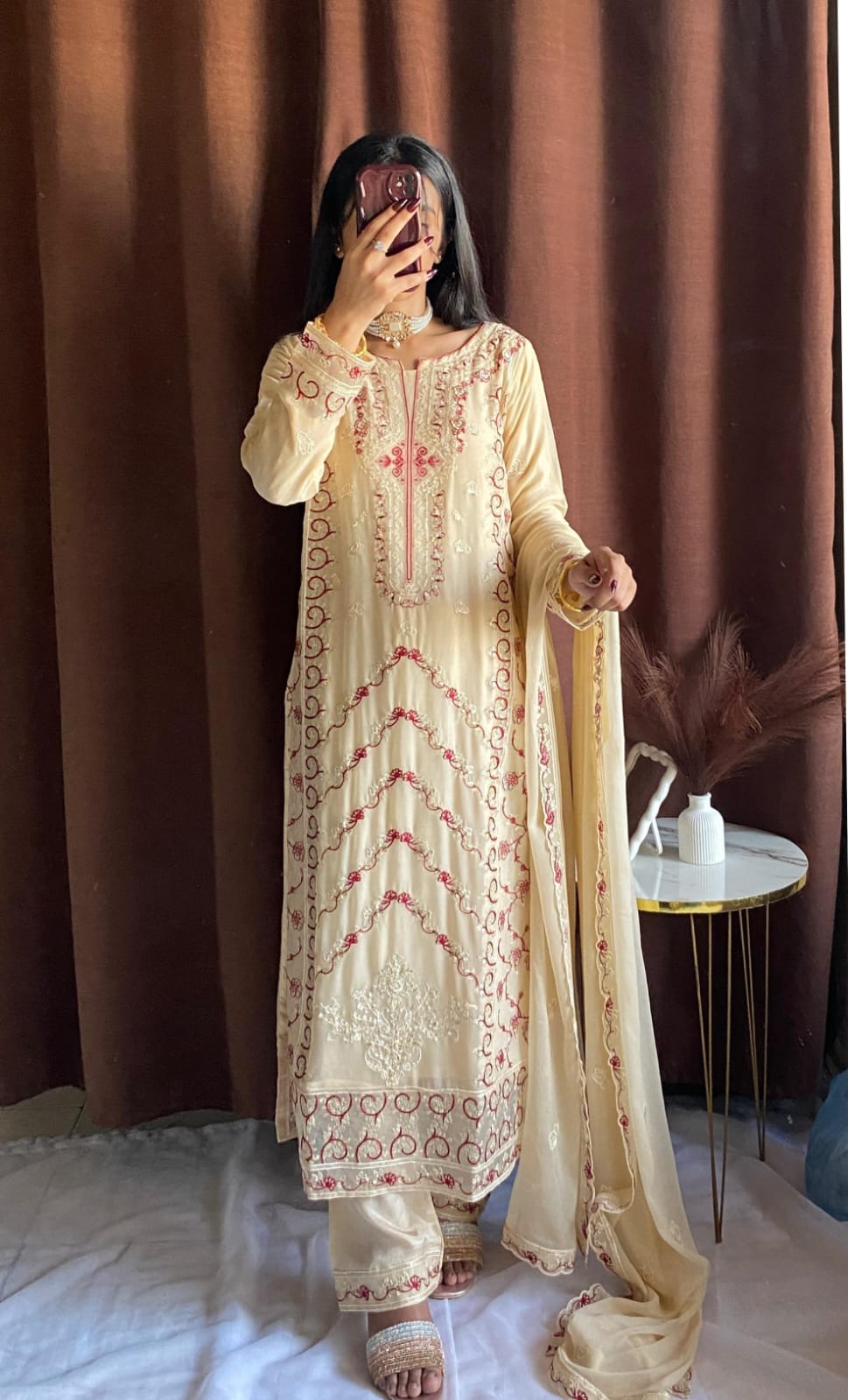 Fabric: Premium Soft Chiffon (Shirt & Dupatta) with Dyed Cotton Silk Trousers
