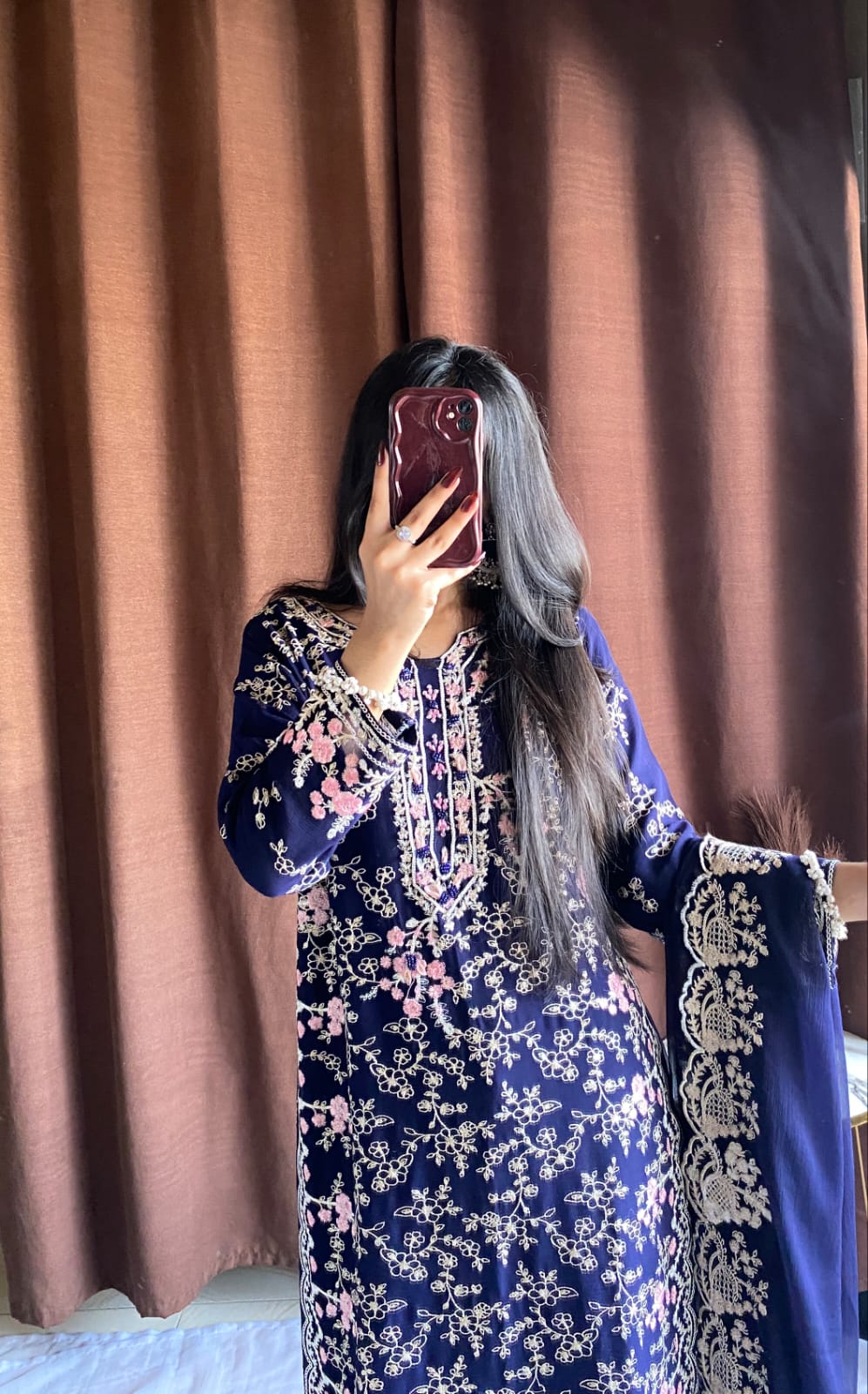 Fabric: Premium Soft Chiffon (Shirt & Dupatta) with Dyed Cotton Silk Trousers