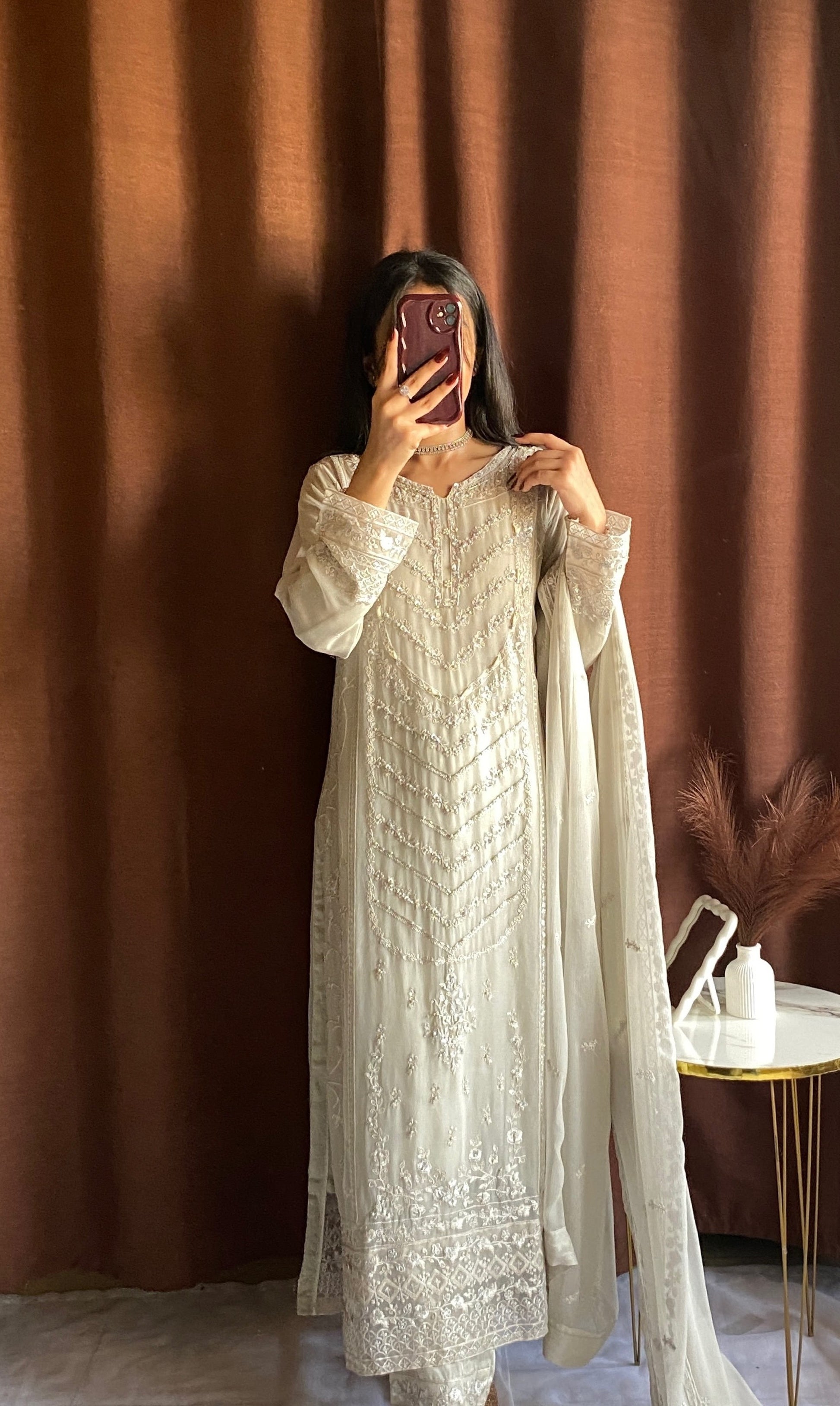 Fabric: Premium Soft Chiffon (Shirt & Dupatta) with Dyed Cotton Silk Trousers